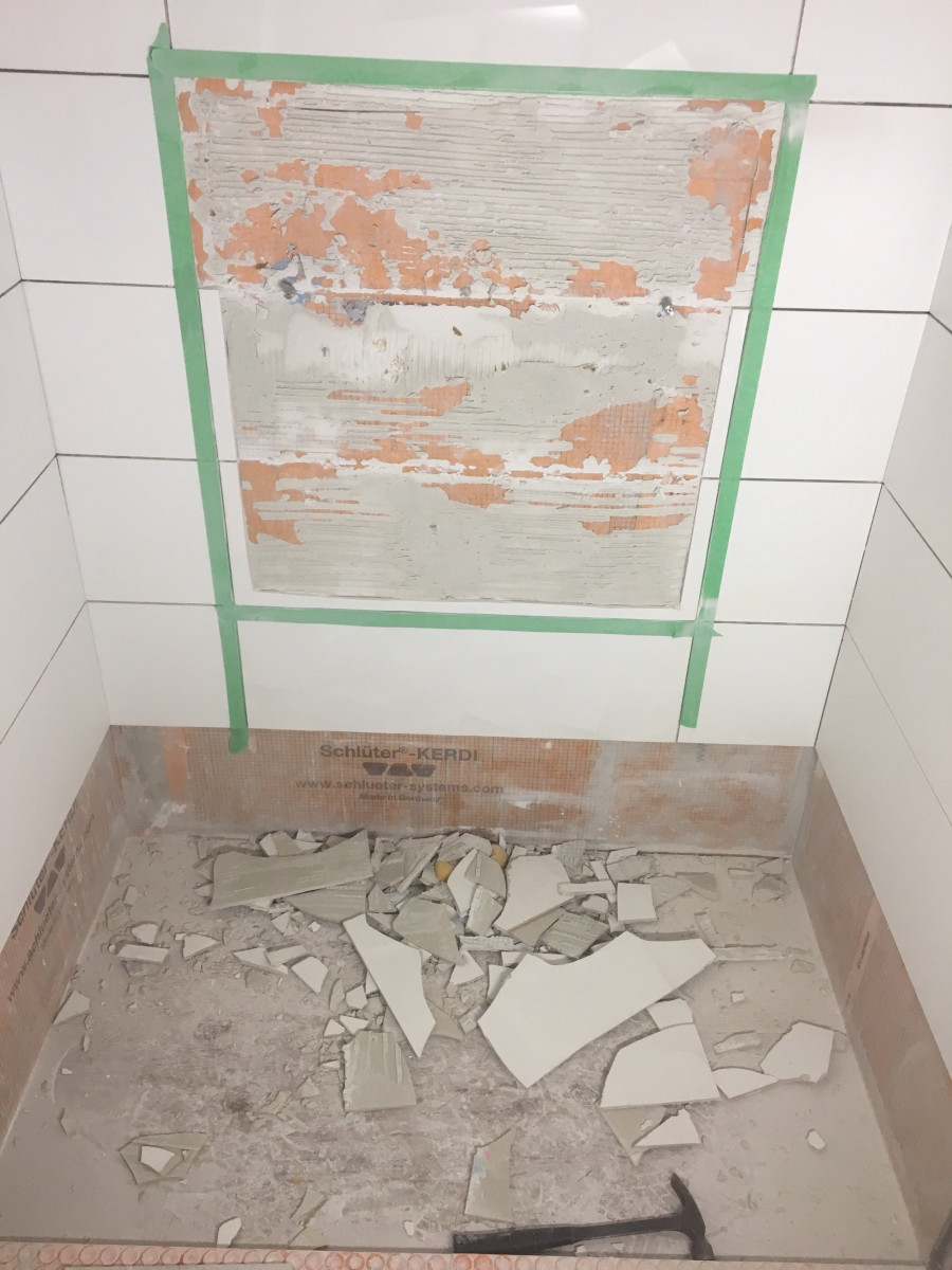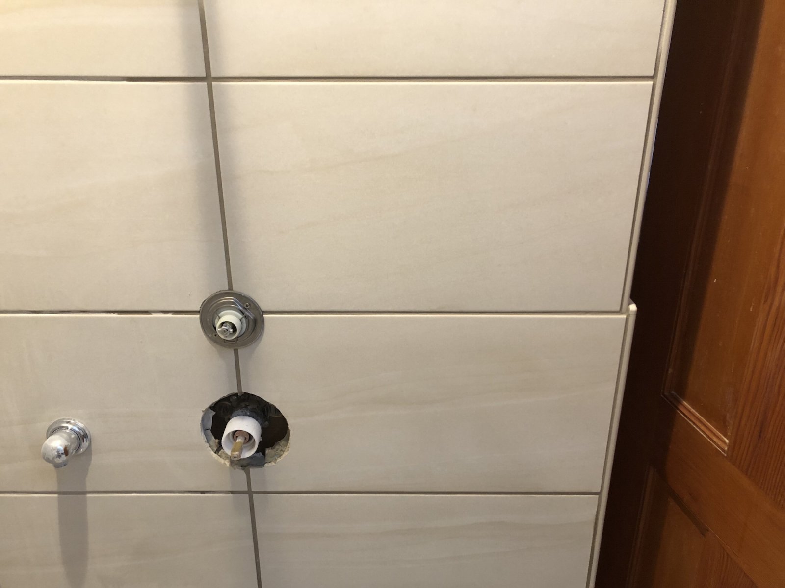 My mistake or the plumber’s, the sparky’s, the hack who built it a few years back, the kid who fell on the bath faucet and broke it off…regardless of who takes the blame, I am an experienced tile surgeon. Fixes are often dusty and dirty, and there are no long-term warranties on repairs to other installers installations.